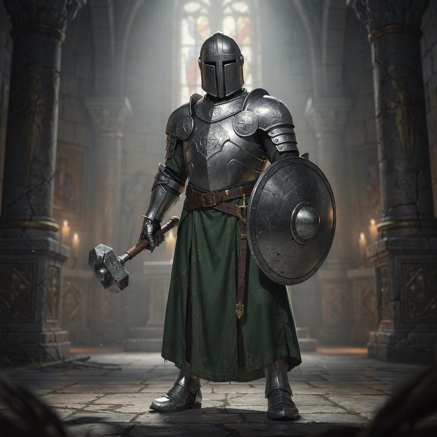 Pictured here in the armament of a level 3 acolyte and cleric in the Gabrielite order.